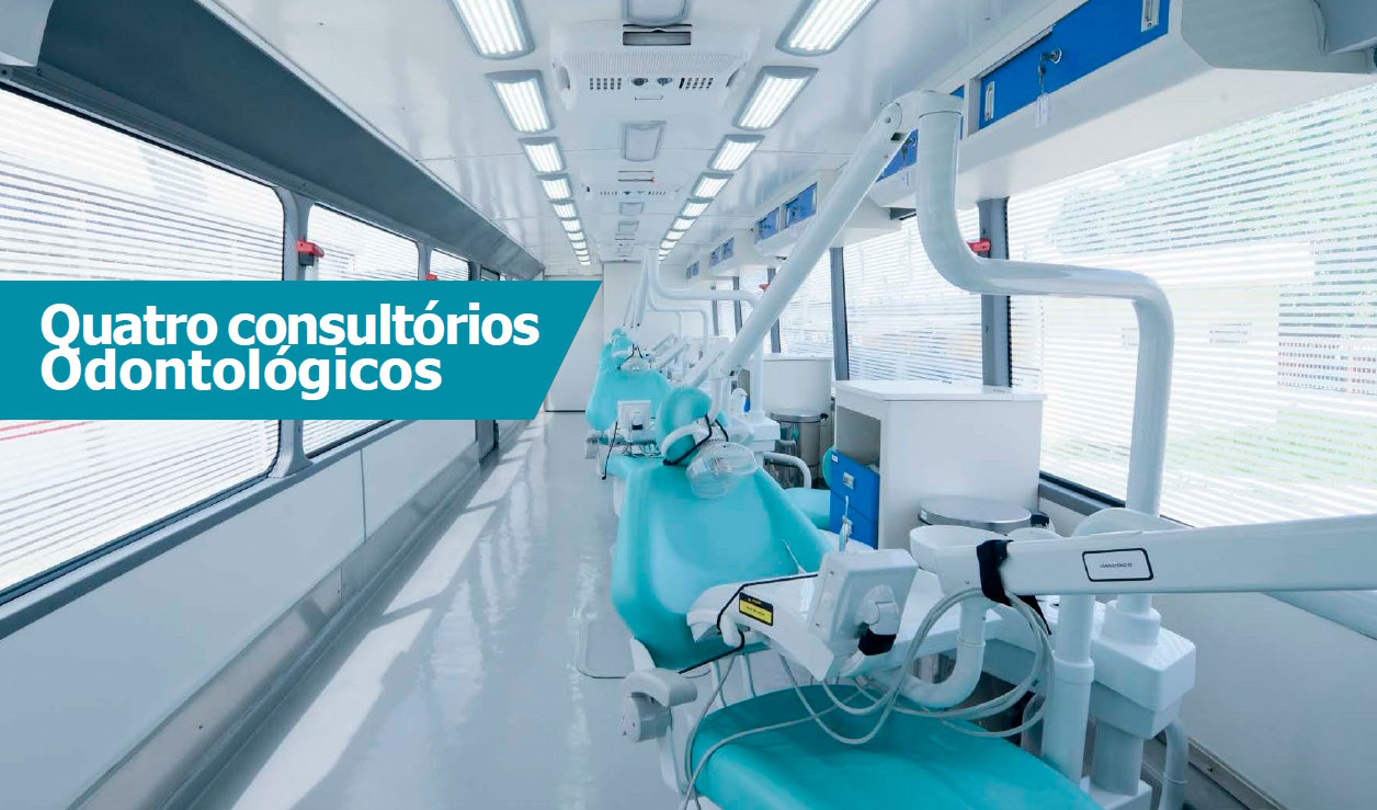 Um ônibus especial desenvolvido para oferecer a estrutura mais ampla e completa para atendimento odontológico itinerante.
